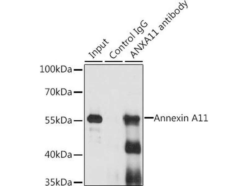 - This gene encodes a member of the annexin family, a group of calcium-dependent phospholipid-binding proteins. Annexins have unique N-terminal domains and conserved C-terminal domains, which contain calcium-dependent phospholipid-binding sites. The encoded protein is a 56-kD antigen recognized by sera from patients with various autoimmune diseases. Several transcript variants encoding two different isoforms have been identified.,ANXA11,ANX11,CAP50,Signal Transduction,Cell Biology & Developmental Biology,Cell Adhesion,Annexins,Cytoskeleton,Neuroscience,Calcium Signaling,ANXA11