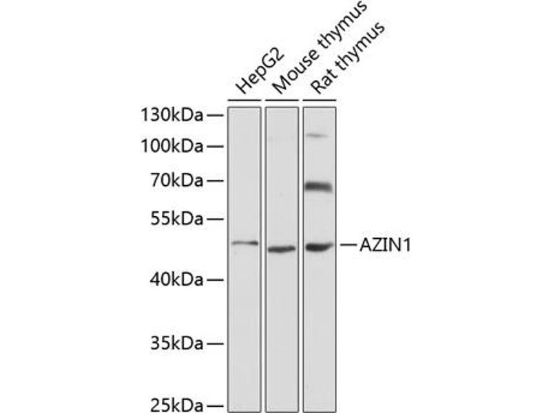 The protein encoded by this gene belongs to the antizyme inhibitor family, which plays a role in cell growth and proliferation by maintaining polyamine homeostasis within the cell. Antizyme inhibitors are homologs of ornithine decarboxylase (ODC, the key enzyme in polyamine biosynthesis) that have lost the ability to decarboxylase ornithine, however, retain the ability to bind to antizymes. Antizymes negatively regulate intracellular polyamine levels by binding to ODC and targeting it for degradation, as well as by inhibiting polyamine uptake. Antizyme inhibitors function as positive regulators of polyamine levels by sequestering antizymes and neutralizing their effect. This gene encodes antizyme inhibitor 1, the first member of this gene family that is ubiquitously expressed, and is localized in the nucleus and cytoplasm. Overexpression of antizyme inhibitor 1 gene has been associated with increased proliferation, cellular transformation and tumorigenesis. Gene knockout studies showed that homozygous mutant mice lacking functional antizyme inhibitor 1 gene died at birth with abnormal liver morphology. RNA editing of this gene, predominantly in the liver tissue, has been linked to the progression of hepatocellular carcinoma. Alternatively spliced transcript variants have been described for this gene.,AZIN1,AZI,AZI1,AZIA1,OAZI,OAZIN,ODC1L,Signal Transduction,Endocrine & Metabolism,Amino acid metabolism,AZIN1