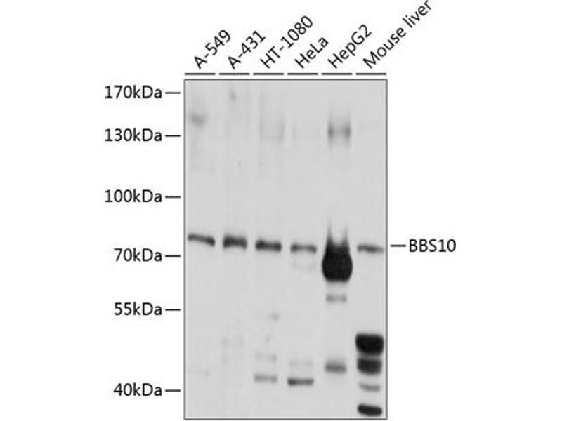 - This gene is a member of the Bardet-Biedl syndrome (BBS) gene family. Bardet-Biedl syndrome is an autosomal recessive disorder characterized by progressive retinal degeneration, obesity, polydactyly, renal malformation and mental retardation. The proteins encoded by BBS gene family members are structurally diverse and the similar phenotypes exhibited by mutations in BBS gene family members is likely due to their shared roles in cilia formation and function. Many BBS proteins localize to the basal bodies, ciliary axonemes, and pericentriolar regions of cells. BBS proteins may also be involved in intracellular trafficking via microtubule-related transport. The protein encoded by this gene is likely not a ciliary protein but rather has distant sequence homology to type II chaperonins. As a molecular chaperone, this protein may affect the folding or stability of other ciliary or basal body proteins. Inhibition of this protein's expression impairs ciliogenesis in preadipocytes. Mutations in this gene cause Bardet-Biedl syndrome type 10.,BBS10,C12orf58,Epigenetics & Nuclear Signaling,Transcription Factors,Neuroscience,BBS10