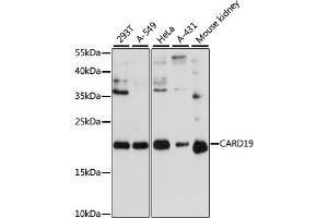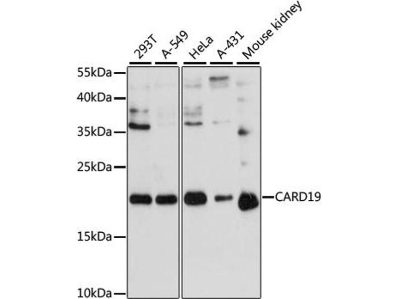 - Plays a role in inhibiting the effects of BCL10-induced activation of NF-kappa-B. May inhibit the phosphorylation of BCL10 in a CARD-dependent manner.,CARD19,BinCARD,C9orf89,Signal Transduction,CARD19
