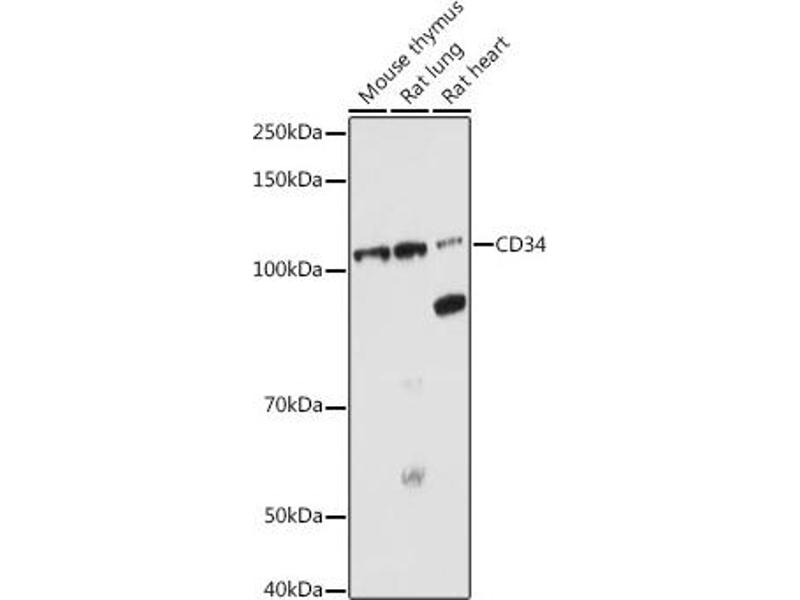 - A synthetic peptide corresponding to a sequence within amino acids 300 to the C-terminus of human CD34 (NP_001020280.1).