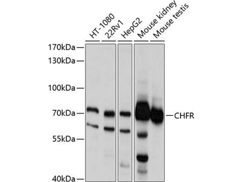This gene encodes an E3 ubiquitin-protein ligase required for the maintenance of the antephase checkpoint that regulates cell cycle entry into mitosis and, therefore, may play a key role in cell cycle progression and tumorigenesis. The encoded protein has an N-terminal forkhead-associated domain, a central RING-finger domain, and a cysteine-rich C-terminal region. Alternatively spliced transcript variants that encode different protein isoforms have been described.,CHFR,RNF116,RNF196,Epigenetics & Nuclear Signaling,Cancer,Cell Biology & Developmental Biology,Cell Cycle,Cell cycle inhibitors,CHFR