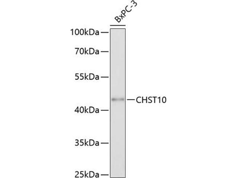 This anti-CHST10 antibody is a Rabbit Polyclonal antibody detecting CHST10 in WB. Suitable for Human.