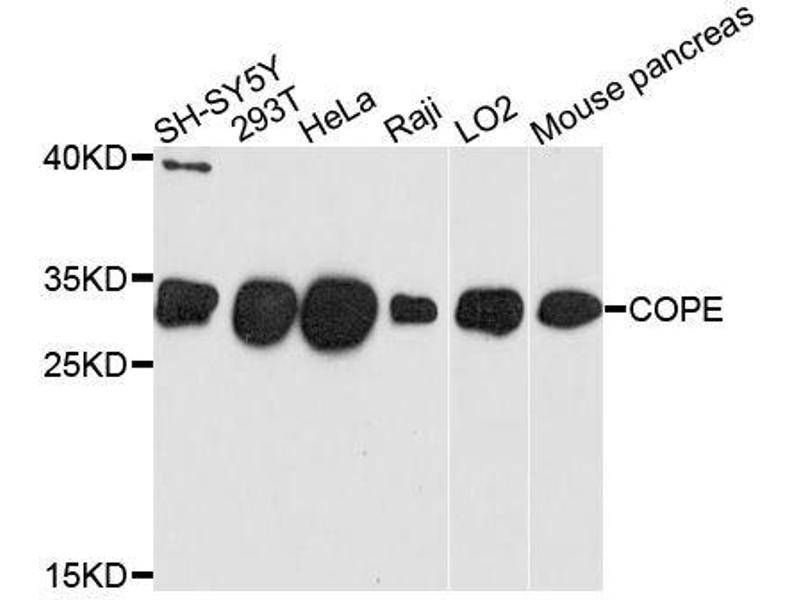 This Rabbit Polyclonal antibody specifically detects COPE in WB. It exhibits reactivity toward Human.