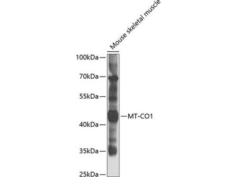 - A synthetic peptide corresponding to a sequence within amino acids 400 to the C-terminus of mouse COX1 (NP_904330.1).