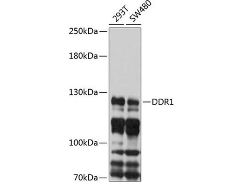 Receptor tyrosine kinases play a key role in the communication of cells with their microenvironment. These kinases are involved in the regulation of cell growth, differentiation and metabolism. The protein encoded by this gene belongs to a subfamily of tyrosine kinase receptors with homology to Dictyostelium discoideum protein discoidin I in their extracellular domain, and that are activated by various types of collagen. Expression of this protein is restricted to epithelial cells, particularly in the kidney, lung, gastrointestinal tract, and brain. In addition, it has been shown to be significantly overexpressed in several human tumors. Alternatively spliced transcript variants encoding different isoforms have been described for this gene.,CAK,CD167,DDR,EDDR1,HGK2,MCK10,NEP,NTRK4,PTK3,PTK3A,RTK6,TRKE,DDR1,Cancer,Signal Transduction,Kinase,Tyrosine kinases,Immunology & Inflammation,CD markers,Neuroscience,Cardiovascular,Heart,Cardiogenesis,DDR1