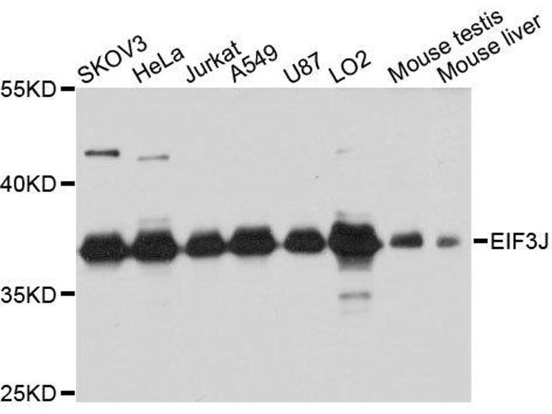 - This gene encodes a core subunit of the eukaryotic initiation factor 3 complex, which participates in the initiation of translation by aiding in the recruitment of protein and mRNA components to the 40S ribosome. There are pseudogenes for this gene on chromosomes 1, 3, and 9. Alternative splicing results in multiple transcript variants encoding different isoforms.,EIF3J,EIF3S1,eIF3-alpha,eIF3-p35,Epigenetics & Nuclear Signaling,Translation Control,EIF3J