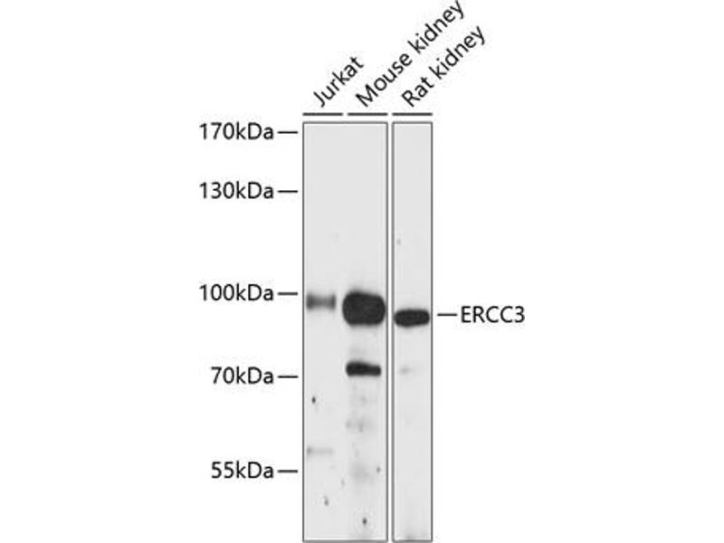 This gene encodes an ATP-dependent DNA helicase that functions in nucleotide excision repair. The encoded protein is a subunit of basal transcription factor 2 (TFIIH) and, therefore, also functions in class II transcription. Mutations in this gene are associated with Xeroderma pigmentosum B, Cockayne's syndrome, and trichothiodystrophy. Alternative splicing results in multiple transcript variants.,ERCC3,BTF2,GTF2H,RAD25,TFIIH,TTD2,XPB,Epigenetics & Nuclear Signaling,Transcription Factors,DNA Damage & Repair,Cancer,Cell Biology & Developmental Biology,Apoptosis,Endocrine & Metabolism,Nucleotide metabolism,Purine and pyrimidine synthesis,ERCC3
