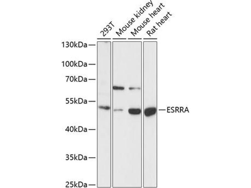 The protein encoded by this gene is a nuclear receptor that is closely related to the estrogen receptor. This protein acts as a site-specific transcription regulator and has been also shown to interact with estrogen and the transcripton factor TFIIB by direct protein-protein contact. The binding and regulatory activities of this protein have been demonstrated in the regulation of a variety of genes including lactoferrin, osteopontin, medium-chain acyl coenzyme A dehydrogenase (MCAD) and thyroid hormone receptor genes. A processed pseudogene of ESRRA is located on chromosome 13q12.1. Alternatively spliced transcript variants have been found for this gene.,ESRRA,ERR1,ERRa,ERRalpha,ESRL1,NR3B1,Epigenetics & Nuclear Signaling,Transcription Factors,Nuclear Receptor Signaling,Nuclear hormone receptors,Cancer,Signal Transduction,Endocrine & Metabolism,Mitochondrial metabolism,Mitochondrial Biogenesis,Nucleotide metabolism,Molecular processes,ESRRA