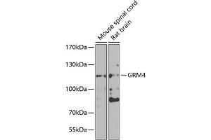 The Rabbit Polyclonal anti-Metabotropic Glutamate Receptor 4 antibody (ABIN6223112) specifically detects Metabotropic Glutamate Receptor 4 in WB.