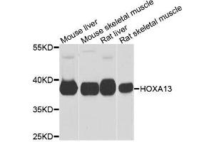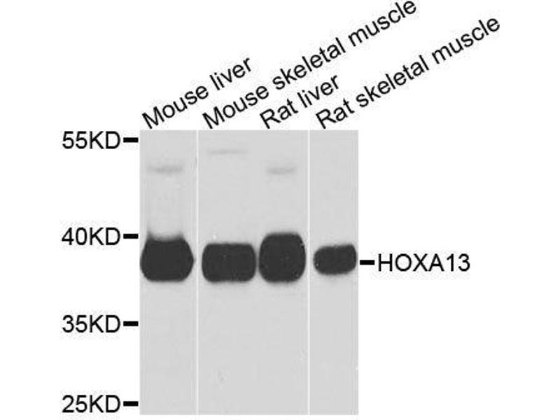 - Recombinant fusion protein containing a sequence corresponding to amino acids 140-320 of human HOXA13 (NP_000513.2).