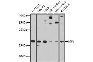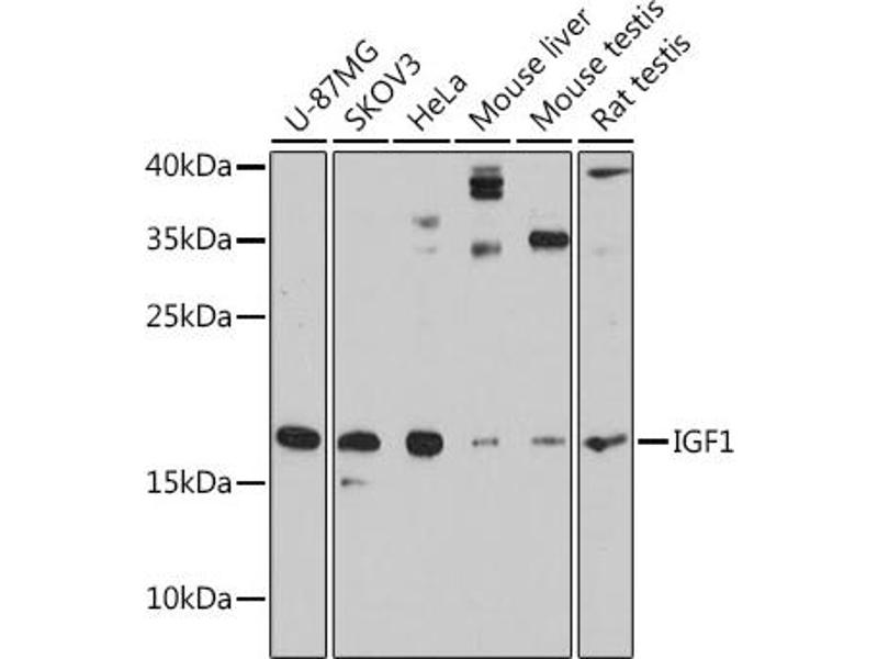 - A synthetic peptide corresponding to a sequence within amino acids 50-150 of human IGF1 (NP_000609.1).