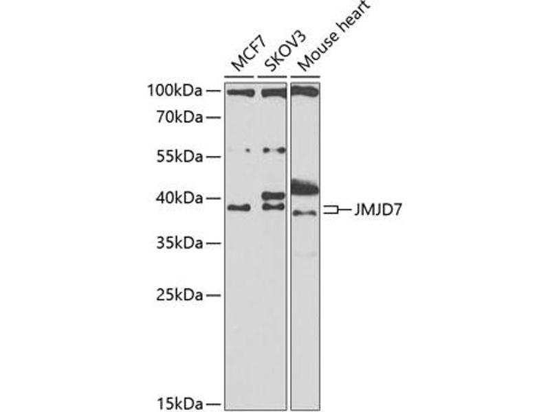 This gene encodes a highly conserved protein with a JmjC domain, which are part of the cupin metalloenzyme superfamily. JmjC proteins may function as 2-oxoglutarate-Fe(II)-dependent dioxygenases. Most tissues also express read-through transcripts from this gene into the downstream phospholipase A2, group IVB (cytosolic) gene, some of which may encode fusion proteins combining the N-terminus of this protein with the phospholipase A2, group IVB protein.,JMJD7,Epigenetics & Nuclear Signaling,Cell Biology & Developmental Biology,JMJD7