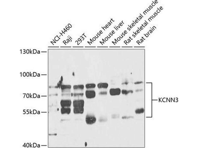 Action potentials in vertebrate neurons are followed by an afterhyperpolarization (AHP) that may persist for several seconds and may have profound consequences for the firing pattern of the neuron. Each component of the AHP is kinetically distinct and is mediated by different calcium-activated potassium channels. This gene belongs to the KCNN family of potassium channels. It encodes an integral membrane protein that forms a voltage-independent calcium-activated channel, which is thought to regulate neuronal excitability by contributing to the slow component of synaptic AHP. This gene contains two CAG repeat regions in the coding sequence. It was thought that expansion of one or both of these repeats could lead to an increased susceptibility to schizophrenia or bipolar disorder, but studies indicate that this is probably not the case. Alternatively spliced transcript variants encoding different isoforms have been found for this gene.,KCNN3,KCa2.3,SK3,SKCA3,hSK3,Signal Transduction,Neuroscience,KCNN3