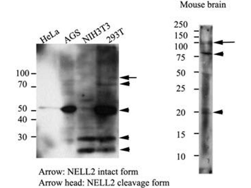 Protein kinase C-binding protein, NELL2 is expressed abundantly in neural tissues and may play important roles in the development of neural tissues. Also, NELL protein contains six epidermal growth factor (EGF)-like repeat domains that participate in calcium binding.Synonyms: NEL-like protein 2, NELL2, NRP2, Nel-related protein 2