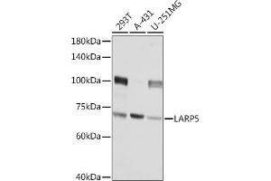 This gene encodes a member of an evolutionarily conserved protein family implicated in RNA metabolism and translation. Members of this family are characterized by the presence of an La motif, which is often located adjacent to one or more RNA recognition motifs (RRM). Together, the two motifs constitute the functional region of the protein and enable its interaction with the RNA substrate. This protein family is divided into five sub-families: the genuine La proteins and four La-related protein (LARP) sub-families. The protein encoded by this gene belongs to LARP sub-family 4. It is a cytoplasmic protein that may play a stimulatory role in translation.,LARP4B,KIAA0217,LARP5,Epigenetics & Nuclear Signaling,LARP5