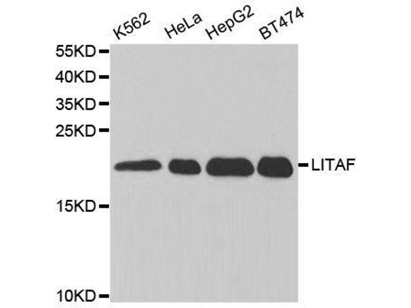 - Recombinant fusion protein containing a sequence corresponding to amino acids 1-161 of human LITAF (NP_004853.2).