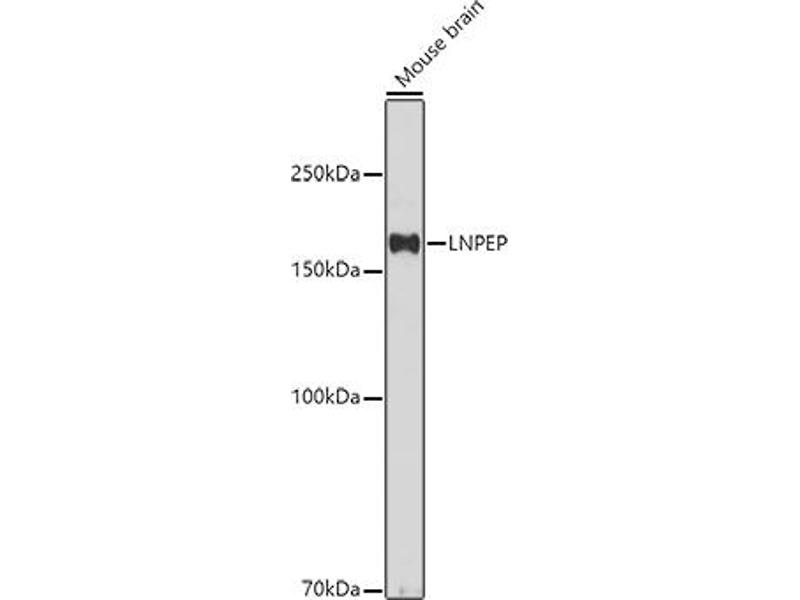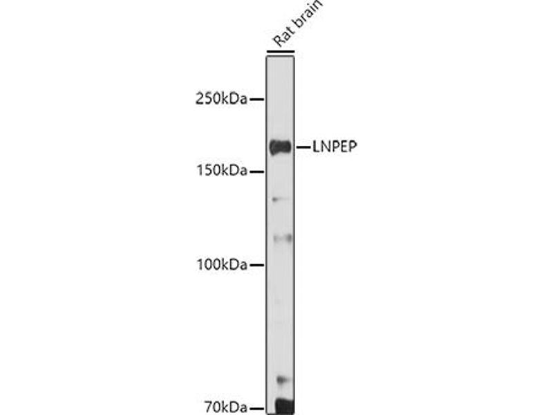 This gene encodes a zinc-dependent aminopeptidase that cleaves vasopressin, oxytocin, lys-bradykinin, met-enkephalin, dynorphin A and other peptide hormones. The protein can be secreted in maternal serum, reside in intracellular vesicles with the insulin-responsive glucose transporter GLUT4, or form a type II integral membrane glycoprotein. The protein catalyzes the final step in the conversion of angiotensinogen to angiotensin IV (AT4) and is also a receptor for AT4. Alternative splicing results in multiple transcript variants encoding different isoforms.,LNPEP,CAP,IRAP,P-LAP,PLAP,Cell Biology & Developmental Biology,Ubiquitin,LNPEP