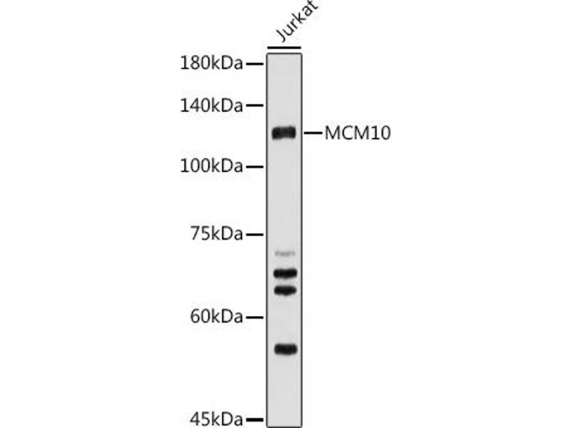 - The protein encoded by this gene is one of the highly conserved mini-chromosome maintenance proteins (MCM) that are involved in the initiation of eukaryotic genome replication. The hexameric protein complex formed by MCM proteins is a key component of the pre-replication complex (pre-RC) and it may be involved in the formation of replication forks and in the recruitment of other DNA replication related proteins. This protein can interact with MCM2 and MCM6, as well as with the origin recognition protein ORC2. It is regulated by proteolysis and phosphorylation in a cell cycle-dependent manner. Studies of a similar protein in Xenopus suggest that the chromatin binding of this protein at the onset of DNA replication is after pre-RC assembly and before origin unwinding. Alternatively spliced transcript variants encoding distinct isoforms have been identified.,MCM10,CNA43,DNA43,PRO2249,Epigenetics & Nuclear Signaling,MCM10