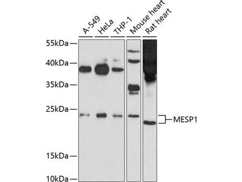 Transcription factor. Plays a role in the epithelialization of somitic mesoderm and in the development of cardiac mesoderm. Defines the rostrocaudal patterning of the somites by participating in distinct Notch pathways (By similarity.,MESP1,bHLHc5,Epigenetics & Nuclear Signaling,Transcription Factors,Cardiovascular,Heart,Cardiogenesis,MESP1