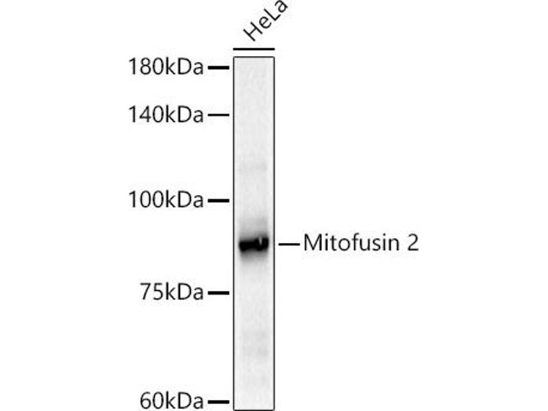 - A synthetic peptide corresponding to a sequence within amino acids 500-600 of human Mitofusin 2 (NP_001121132.1).