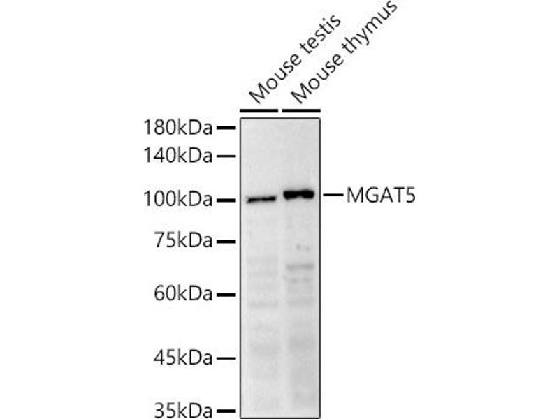 The protein encoded by this gene belongs to the glycosyltransferase family. It catalyzes the addition of beta-1,6-N-acetylglucosamine to the alpha-linked mannose of biantennary N-linked oligosaccharides present on the newly synthesized glycoproteins. It is one of the most important enzymes involved in the regulation of the biosynthesis of glycoprotein oligosaccharides. Alterations of the oligosaccharides on cell surface glycoproteins cause significant changes in the adhesive or migratory behavior of a cell. Increase in the activity of this enzyme has been correlated with the progression of invasive malignancies.,MGAT5,GNT-V,GNT-VA,alpha-1,Cancer,Invasion and Metastasis,Signal Transduction,Cell Biology & Developmental Biology,Cell Adhesion,Tight Junctions,Cytoskeleton,MGAT5