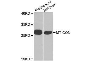 - A synthetic peptide corresponding to a sequence within amino acids 1-100 of mouse MT-CO3 (NP_904334.1).