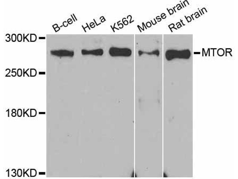 - A synthetic peptide corresponding to a sequence within amino acids 2400-2500 of human mTOR (NP_004949.1).