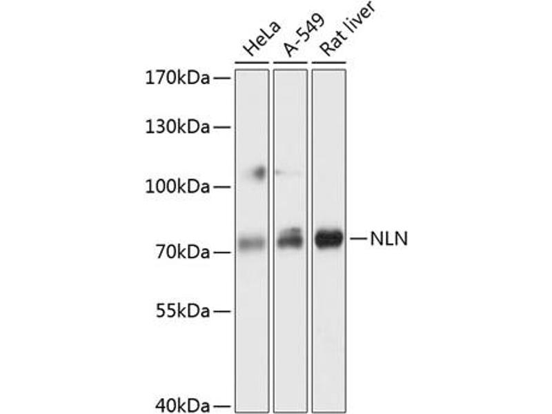 This Rabbit Polyclonal antibody specifically detects NLN in WB. It exhibits reactivity toward Human.