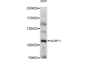 This gene is a member of the the NOD-like receptor protein (NLRP) gene family and encodes a protein with an N-terminal pyrin death (PYD) domain and nucleoside triphosphate hydrolase (NACHT) domain and a C-terminal leucine-rich repeats (LRR) region. This gene has been shown to regulate caspases in the proinflammatory signal transduction pathway and, based on studies of other members of the NLRP gene family with similar domain structure, is predicted to form part of the multiprotein inflammasome complex. Alternative splicing produces multiple transcript variants encoding distince isoforms.,NLRP11,CLR19.6,NALP11,NOD17,PAN10,PYPAF6,PYPAF7,Epigenetics & Nuclear Signaling,RNA Binding,Immunology & Inflammation,Cell Intrinsic Innate Immunity Signaling Pathway,NLRP11