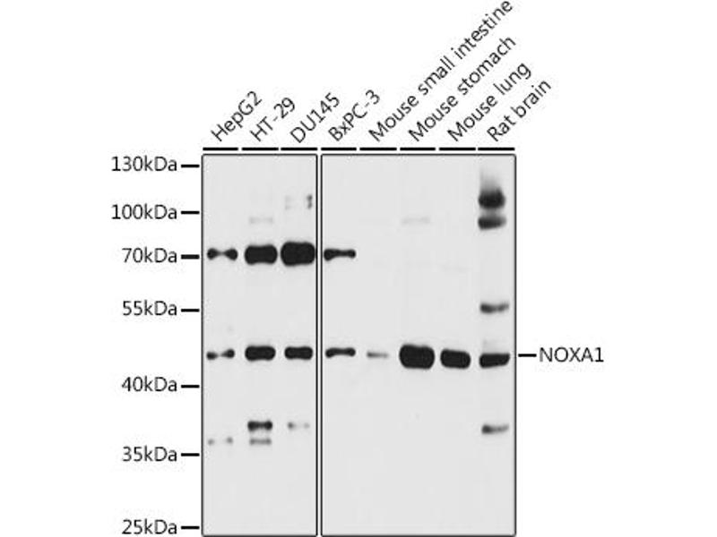 This gene encodes a protein which activates NADPH oxidases, enzymes which catalyze a reaction generating reactive oxygen species. The encoded protein contains four N-terminal tetratricopeptide domains and a C-terminal Src homology 3 domain. Interaction between the encoded protein and proteins in the oxidase regulatory complex occur via the tetratricopeptide domains. Multiple transcript variants encoding different isoforms have been found for this gene.,NOXA1,NY-CO-31,SDCCAG31,p51NOX,Signal Transduction,Cell Biology & Developmental Biology,Endocrine & Metabolism,Cardiovascular,Hypoxia,NOXA1