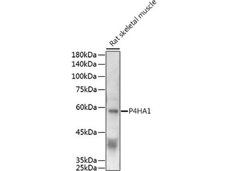 This gene encodes a component of prolyl 4-hydroxylase, a key enzyme in collagen synthesis composed of two identical alpha subunits and two beta subunits. The encoded protein is one of several different types of alpha subunits and provides the major part of the catalytic site of the active enzyme. In collagen and related proteins, prolyl 4-hydroxylase catalyzes the formation of 4-hydroxyproline that is essential to the proper three-dimensional folding of newly synthesized procollagen chains. Alternatively spliced transcript variants encoding different isoforms have been described.,P4HA1,P4HA,Signal Transduction,Cell Biology & Developmental Biology,Cytoskeleton,Extracellular Matrix,Collagen,P4HA1