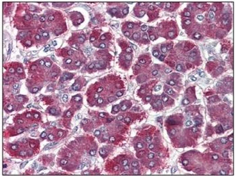 The Mouse Monoclonal anti-PRSS1 antibody (Clone n-a) (ABIN614514) specifically detects PRSS1 in EIA and IHC (p).