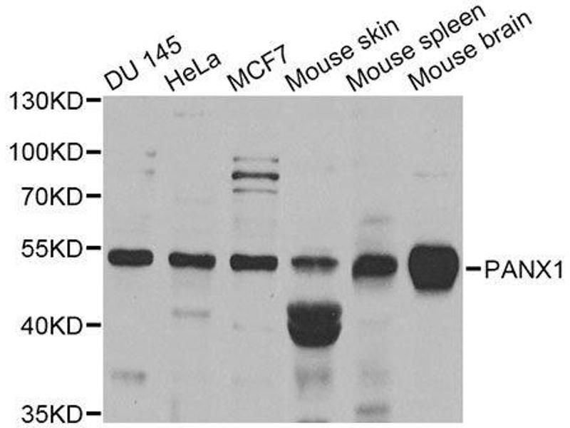- A synthetic peptide corresponding to a sequence within amino acids 50-150 of human Pannexin 1 (NP_056183.2).