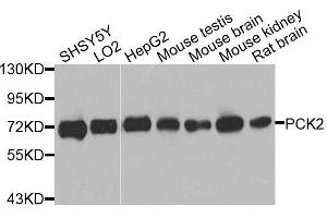 - This gene encodes a mitochondrial enzyme that catalyzes the conversion of oxaloacetate to phosphoenolpyruvate in the presence of guanosine triphosphate (GTP). A cytosolic form of this protein is encoded by a different gene and is the key enzyme of gluconeogenesis in the liver. Alternatively spliced transcript variants have been described.,PCK2,PEPCK,PEPCK-M,PEPCK2,Cancer,Signal Transduction,Kinase,Endocrine & Metabolism,Mitochondrial metabolism,Mitochondrial markers,Lipid Metabolism,Cholesterol Metabolism,Carbohydrate metabolism,Endocrine and metabolic diseases,Obesity,Cardiovascular,Lipids,PCK2