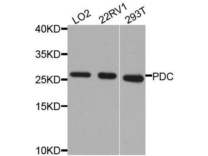 - Recombinant fusion protein containing a sequence corresponding to amino acids 1-246 of human PDC (NP_002588.3).