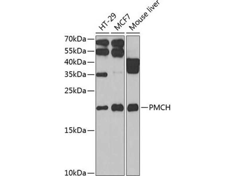 This gene encodes a preproprotein that is proteolytically processed to generate multiple protein products. These products include melanin-concentrating hormone (MCH), neuropeptide-glutamic acid-isoleucine (NEI), and neuropeptide-glycine-glutamic acid (NGE). Melanin-concentrating hormone is a 19-amino acid neuropeptide that stimulates hunger and may additionally regulate energy homeostasis, reproductive function, and sleep. Pseudogenes of this gene have been identified on chromosome 5.,PMCH,MCH,ppMCH,pro-MCH,Signal Transduction,Cell Biology & Developmental Biology,Growth factor,Neuroscience,PMCH