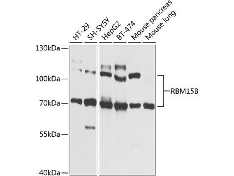 The Rabbit Polyclonal anti-RBM15B antibody has been validated for WB. It is suitable to detect RBM15B in samples from Human.