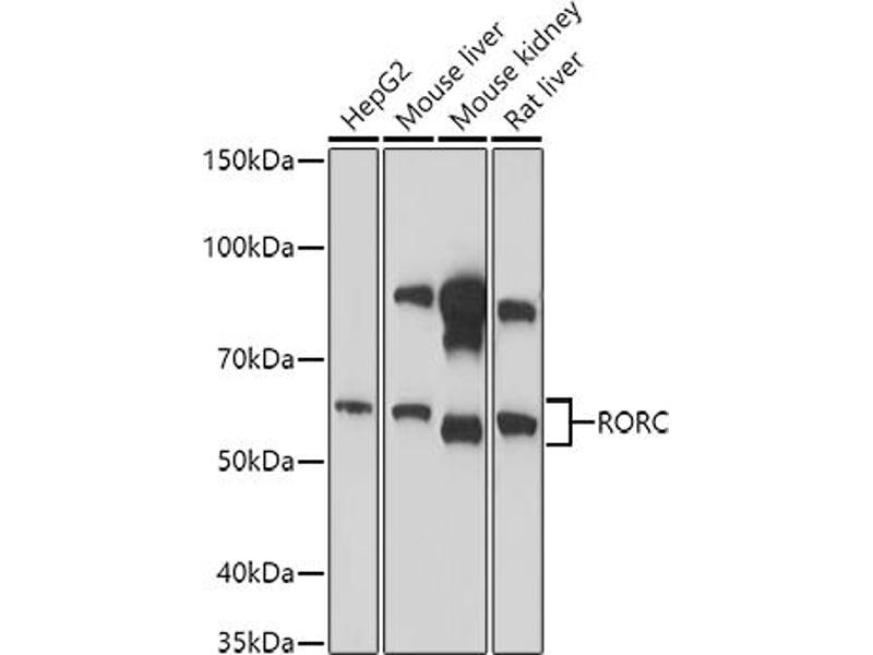 The protein encoded by this gene is a DNA-binding transcription factor and is a member of the NR1 subfamily of nuclear hormone receptors. The specific functions of this protein are not known, however, studies of a similar gene in mice have shown that this gene may be essential for lymphoid organogenesis and may play an important regulatory role in thymopoiesis. In addition, studies in mice suggest that the protein encoded by this gene may inhibit the expression of Fas ligand and IL2. Two transcript variants encoding different isoforms have been found for this gene.,RORC,IMD42,NR1F3,RORG,RZR-GAMMA,RZRG,TOR,Epigenetics & Nuclear Signaling,Transcription Factors,Nuclear Receptor Signaling,Signal Transduction,Cell Biology & Developmental Biology,Growth factor,RORC
