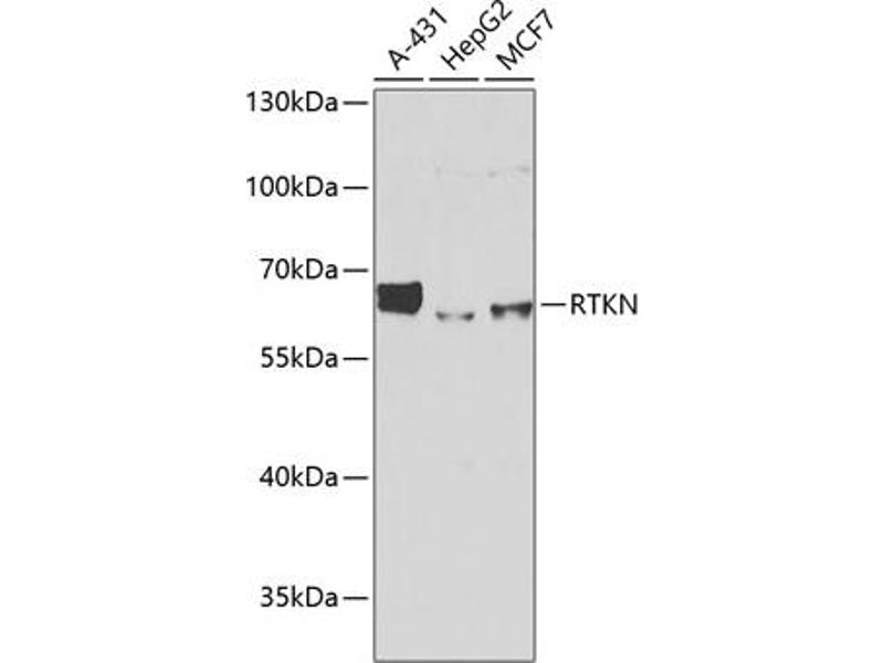 This gene encodes a scaffold protein that interacts with GTP-bound Rho proteins. Binding of this protein inhibits the GTPase activity of Rho proteins. This protein may interfere with the conversion of active, GTP-bound Rho to the inactive GDP-bound form by RhoGAP. Rho proteins regulate many important cellular processes, including cytokinesis, transcription, smooth muscle contraction, cell growth and transformation. Dysregulation of the Rho signal transduction pathway has been implicated in many forms of cancer. Alternative splicing results in multiple transcript variants encoding different isoforms.,RTKN,rhotekin,Signal Transduction,G protein signaling,Signal Transduction,Cell Biology & Developmental Biology,Apoptosis,RTKN
