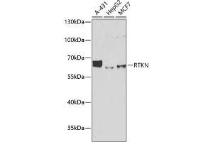 Recombinant fusion protein containing a sequence corresponding to amino acids 254-513 of human RTKN (NP_001015056.1).