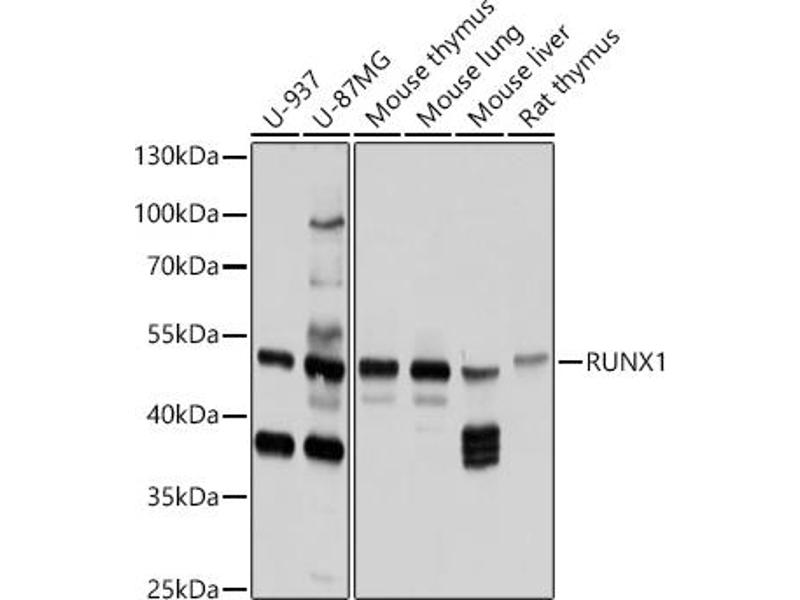 Core binding factor (CBF) is a heterodimeric transcription factor that binds to the core element of many enhancers and promoters. The protein encoded by this gene represents the alpha subunit of CBF and is thought to be involved in the development of normal hematopoiesis. Chromosomal translocations involving this gene are well-documented and have been associated with several types of leukemia. Three transcript variants encoding different isoforms have been found for this gene.,RUNX1,AML1,AML1-EVI-1,AMLCR1,CBF2alpha,CBFA2,EVI-1,PEBP2aB,PEBP2alpha,Epigenetics & Nuclear Signaling,Transcription Factors,Cancer,Cell Biology & Developmental Biology,Hippo Signaling Pathway,Neuroscience,Stem Cells,Hematopoietic Progenitors,Cardiovascular,Angiogenesis,RUNX1