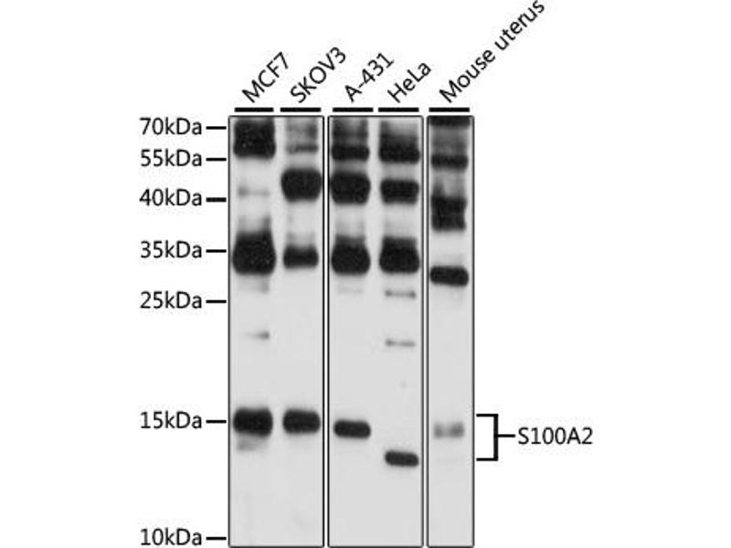 The protein encoded by this gene is a member of the S100 family of proteins containing 2 EF-hand calcium-binding motifs. S100 proteins are localized in the cytoplasm and/or nucleus of a wide range of cells, and involved in the regulation of a number of cellular processes such as cell cycle progression and differentiation. S100 genes include at least 13 members which are located as a cluster on chromosome 1q21. This protein may have a tumor suppressor function. Chromosomal rearrangements and altered expression of this gene have been implicated in breast cancer.,S100A2,CAN19,S100L,Signal Transduction,Cell Biology & Developmental Biology,Cell Cycle,Cell differentiation,Neuroscience,Calcium Signaling,S100A2