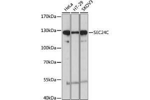 The protein encoded by this gene is a member of the SEC24 subfamily of the SEC23/SEC24 family, which is involved in vesicle trafficking. The encoded protein has similarity to yeast Sec24p component of COPII. COPII is the coat protein complex responsible for vesicle budding from the ER. The product of this gene may play a role in shaping the vesicle, as well as in cargo selection and concentration. Alternatively spliced transcript variants encoding the same protein have been identified.,SEC24C,Signal Transduction,SEC24C