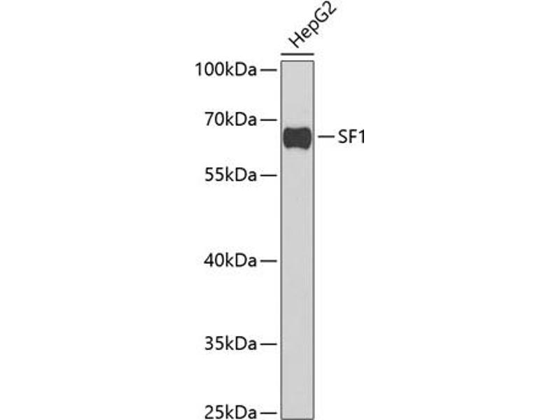 - This gene encodes a nuclear pre-mRNA splicing factor. The encoded protein specifically recognizes the intron branch point sequence at the 3' splice site, together with the large subunit of U2 auxiliary factor (U2AF), and is required for the early stages of spliceosome assembly. It also plays a role in nuclear pre-mRNA retention and transcriptional repression. The encoded protein contains an N-terminal U2AF ligand motif, a central hnRNP K homology motif and quaking 2 region which bind a key branch-site adenosine within the branch point sequence, a zinc knuckles domain, and a C-terminal proline-rich domain. Alternative splicing results in multiple transcript variants.,SF1,BBP,D11S636,MBBP,ZCCHC25,ZFM1,ZNF162,Epigenetics & Nuclear Signaling,Transcription Factors,RNA Binding,SF1