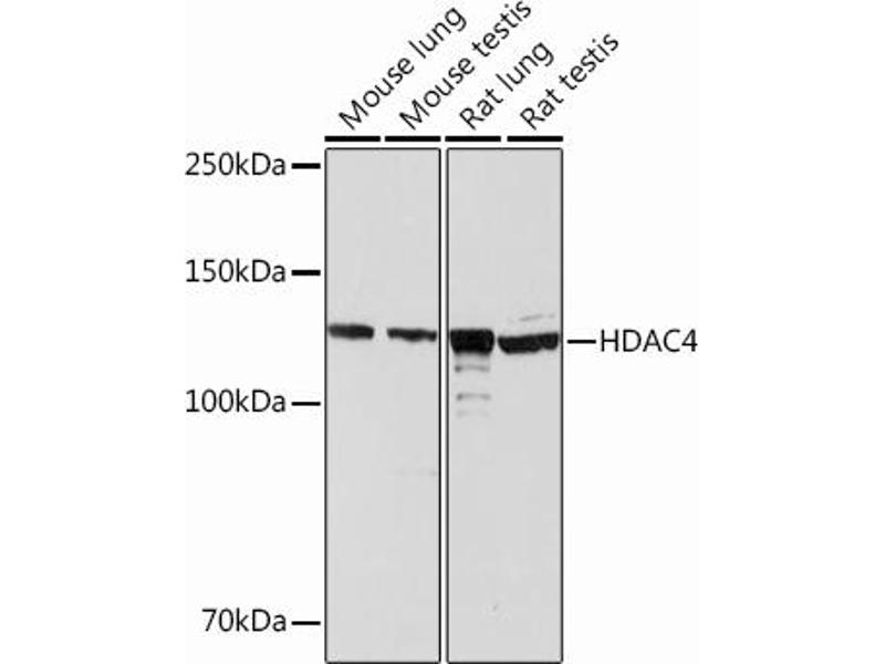 Histones play a critical role in transcriptional regulation, cell cycle progression, and developmental events. Histone acetylation/deacetylation alters chromosome structure and affects transcription factor access to DNA. The protein encoded by this gene belongs to class II of the histone deacetylase/acuc/apha family. It possesses histone deacetylase activity and represses transcription when tethered to a promoter. This protein does not bind DNA directly, but through transcription factors MEF2C and MEF2D. It seems to interact in a multiprotein complex with RbAp48 and HDAC3. [provided by RefSeq, Jul 2008],AHO3, BDMR, HA6116, HD4, HDAC-4, HDAC-A, HDACA,Cardiovascular,Cell Biology & Developmental Biology,Cell Cycle,Epigenetics & Nuclear Signaling,G1/S Checkpoint,Heart,Heart_Hypertrophy,Immunology & Inflammation,NF-kB Signaling Pathway,Notch Signaling Pathway,Nuclear Receptor Signaling,Signal Transduction,Stem Cells,Wnt/β-Catenin Signaling Pathway,HDAC4