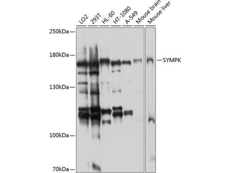 - This gene encodes a nuclear protein that functions in the regulation of polyadenylation and promotes gene expression. The protein forms a high-molecular weight complex with components of the polyadenylation machinery. It is thought to serve as a scaffold for recruiting regulatory factors to the polyadenylation complex. It also participates in 3'-end maturation of histone mRNAs, which do not undergo polyadenylation. The protein also localizes to the cytoplasmic plaques of tight junctions in some cell types.,SYMPK,SPK,SYM,symplekin,Epigenetics & Nuclear Signaling,Signal Transduction,Cell Biology & Developmental Biology,Cell Adhesion,Tight Junctions,Cytoskeleton,SYMPK