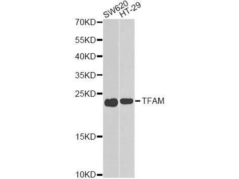 This gene encodes a key mitochondrial transcription factor containing two high mobility group motifs. The encoded protein also functions in mitochondrial DNA replication and repair. Sequence polymorphisms in this gene are associated with Alzheimer's and Parkinson's diseases. There are pseudogenes for this gene on chromosomes 6, 7, and 11. Alternative splicing results in multiple transcript variants.,TFAM,MTDPS15,MTTF1,MTTFA,TCF6,TCF6L1,TCF6L2,TCF6L3,Epigenetics & Nuclear Signaling,Transcription Factors,RNA Binding,Cancer,Signal Transduction,Cell Biology & Developmental Biology,Cell Adhesion,Wnt/β-Catenin Signaling Pathway,Endocrine & Metabolism,Mitochondrial metabolism,Mitochondrial Biogenesis,Mitochondrial markers,Nucleotide metabolism,Molecular processes,Neuroscience,Neurodegenerative Diseases,Cardiovascular,Heart,Cardiogenesis,TFAM