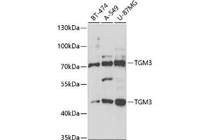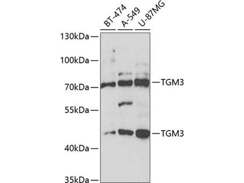 Transglutaminases are enzymes that catalyze the crosslinking of proteins by epsilon-gamma glutamyl lysine isopeptide bonds. While the primary structure of transglutaminases is not conserved, they all have the same amino acid sequence at their active sites and their activity is calcium-dependent. The protein encoded by this gene consists of two polypeptide chains activated from a single precursor protein by proteolysis. The encoded protein is involved the later stages of cell envelope formation in the epidermis and hair follicle.,TGM3,TGE,UHS2,Epigenetics & Nuclear Signaling,Cancer,Signal Transduction,Endocrine & Metabolism,Amino acid metabolism,Neuroscience,Calcium Signaling,TGM3