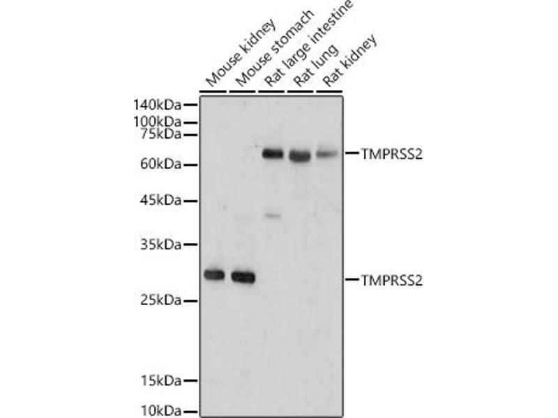 - This gene encodes a protein that belongs to the serine protease family. The encoded protein contains a type II transmembrane domain, a receptor class A domain, a scavenger receptor cysteine-rich domain and a protease domain. Serine proteases are known to be involved in many physiological and pathological processes. This gene was demonstrated to be up-regulated by androgenic hormones in prostate cancer cells and down-regulated in androgen-independent prostate cancer tissue. The protease domain of this protein is thought to be cleaved and secreted into cell media after autocleavage. Alternatively spliced transcript variants encoding different isoforms have been found for this gene.,TMPRSS2,PP9284,PRSS10,Cancer,Tumor biomarkers,Cell Biology & Developmental Biology,Ubiquitin,Neuroscience,Neurodegenerative Diseases,TMPRSS2